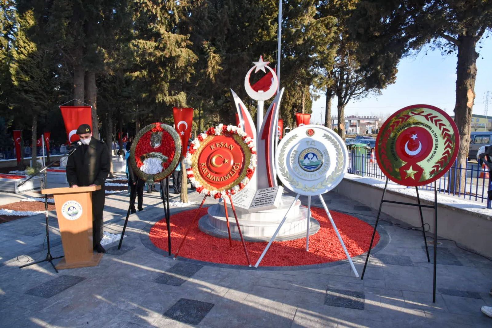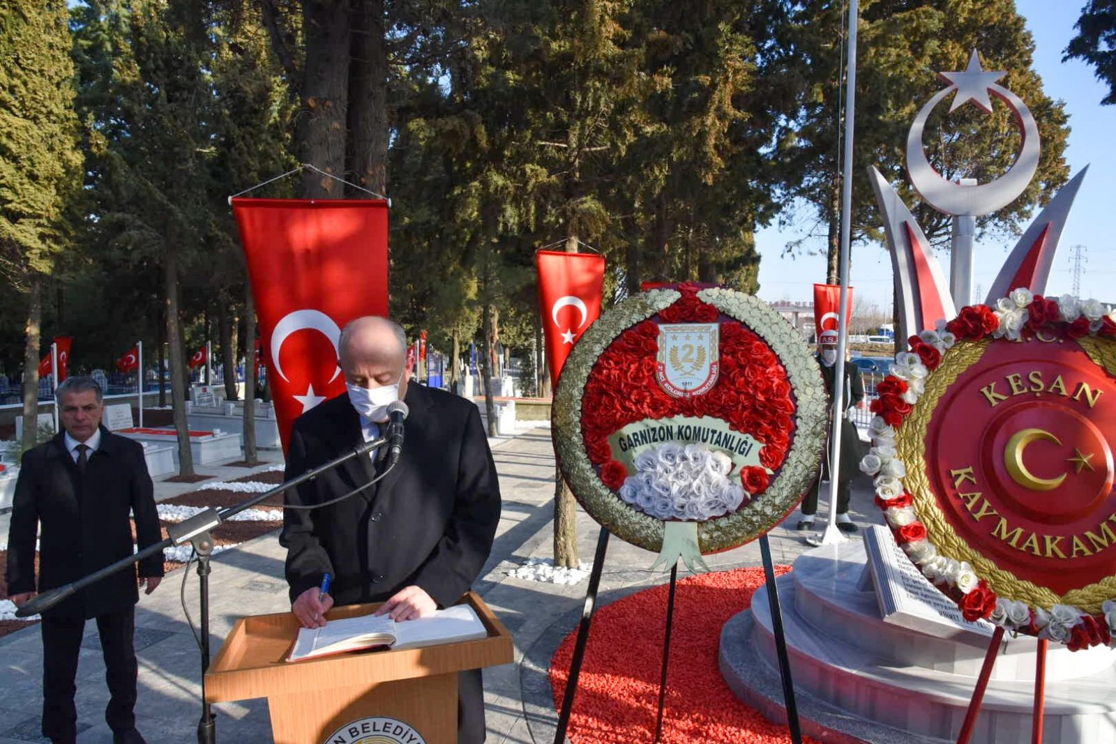 Şehitlik anıtına çelenklerin sunulması, saygı duruşunda bulunulması ve saygı atışının yapılmasının ardından Keşan Belediye Bandosu eşliğinde İstiklal Marşı’nın söylenmesiyle başlayan törende günün anlam ve önemini belirten konuşma Piyade Yüzbaşı Mehmet Senih İlhan tarafından yapıldı. Günün anlam ve önemini belirten konuşmanın ardından Kuran-ı Kerim okundu ve Cemalettin Yılmaz tarafından şehitlik defteri imzalandı. Tören; Asri Mezarlık’taki şehitliğe karanfil bırakılmasının ardından sona erdi.