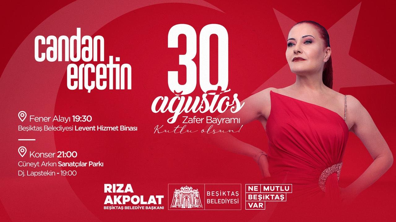 Beşiktaş Belediyesi, 30 Ağustos Zafer Bayramı'nı fener alayı ve Candan Erçetin konseriyle kutlayacak.