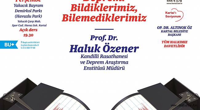 Kartal Belediyesi ile Boğaziçi Üniversitesi Kandilli Rasathanesi ve Deprem Araştırma Enstitüsü’nün iş birliğiyle düzenlenen 'Açık Ders' serisi kapsamında bu kez; Boğaziçi Üniversitesi Kandilli Rasathanesi Deprem Araştırma Enstitüsü Müdürü Prof. Dr. Haluk Özener’in “Deprem: bildiklerimiz, bilemediklerimiz” başlıklı semineri gerçekleşecek. Yakacık Bayram Demirkol Parkı’nda bulunan amfi tiyatroda yapılacak olan etkinlik, 2 Ağustos Perşembe günü saat 19.30’da gerçekleşecek.
