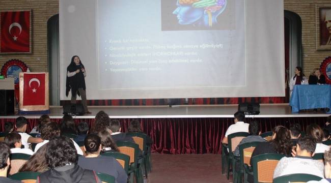 Ahmet Şimşek Anadolu Lisesi 9. Sınıf öğrencilerine “Bağımlılık ve bağımlılıktan korunmanın yolları” konusunda seminer verildi. Rehberlik Servisinden Psikolog Öykü Gülken’in verdiği seminerde konuyla ilgili videolar gösterildi, öğrencilerin soruları yanıtlandı.Ahmet Şimşek Anadolu Lisesi Rehberlik Biriminden Psikolog Öykü Gülken, öğrencileri bağımlılık konusunda bilgilendirmek amacıyla seminer verdiklerini, video izletip soruları yanıtladıklarını, verimli bir seminer gerçekleştirdiklerini söyledi.“Öğrencilerimizi nasıl koruyacağımız önemlidir.”Rehberlik Bölüm Başkanı Psikolog Fatma Demirkaya ise, “Bağımlılık yalnızca madde bağımlılığı olarak algılanmamalıdır. Bağımlılık çok geniş kapsamlı bir konudur. Bağımlılık konusunda önemli olan, öğrencilerimizi bunlardan nasıl koruyacağımızdır. Bu nedenle seminerler düzenliyoruz ve öğrencilerimize bağımlılık konusunda ne yapmaları gerektiğini anlatıyoruz. Neden Bağımlı hale geliriz? Bağımlılık nasıl gelişir? Nasıl yok edilir? Bağımlılıktan kurtulmak için nelere dikkat etmemiz gerekir? Nerelerden yardım ve destek alınır? Bağımlılıkla geçen sürenin yerine hangi aktiviteleri koyarsak daha iyi kontrol sağlarız ve kendimizi koruyabiliriz? gibi soruların yanıtlarını öğrencilerimizle paylaştık.” dedi.