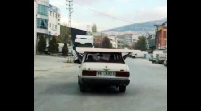 ANKARA Siteler’de trafikte ilerleyen bir aracın üzerinde sürücünün ve yolcunun elbirliği ile taşıdığı sunta, olası kazaya davetiye çıkardı.