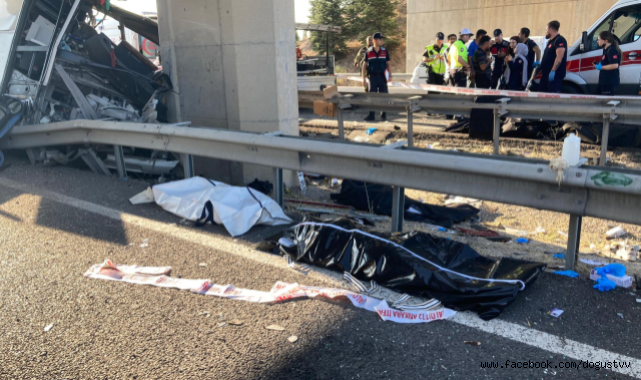 Ankara- Eskişehir yolu Olukpınar köyü mevkinde meydana gelen kazada, seyir halindeki Yolcu Otobüsü kontrolden çıkarak üst geçit duvarına saplandı.KORKUNÇ KAZADA 9 KİŞİ ÖLDÜPolatlı istikametinin trafiğe kapatıldığı korkunç kazada 9 kişi hayatını kaybederken 26 kişi yaralandı. Ankara Valisi Vasip Şahin ise kazanın ardından dikkat çeken ifadeler kullandı. Vali Şahin katıldığı canlı yayında "Fren izi yok, uyuma sonucu olabilir diye yorumda bulundu teknik arkadaşlar. İlerleyen saatlerde tam sebebi ortaya çıkarılacaktır. Otobüs şoförünün de ölen yolcular arasında olduğu bilgisi var" ifadelerini kullandı.