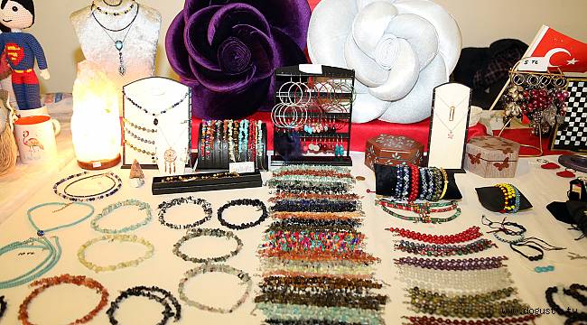 Kadınlar kendi elleriyle ürettikleri; el işi, takı, örgü, cam, ahşap, renk renk geleneksel elbiseler,