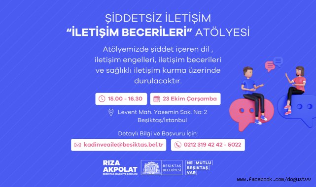 Beşiktaş Belediyesi, Kadın Dayanışma ve Yaşam Merkezi bünyesinde ebeveynlere yönelik "Şiddetsiz İletişim - İletişim Becerileri" konulu bir atölye düzenliyor.