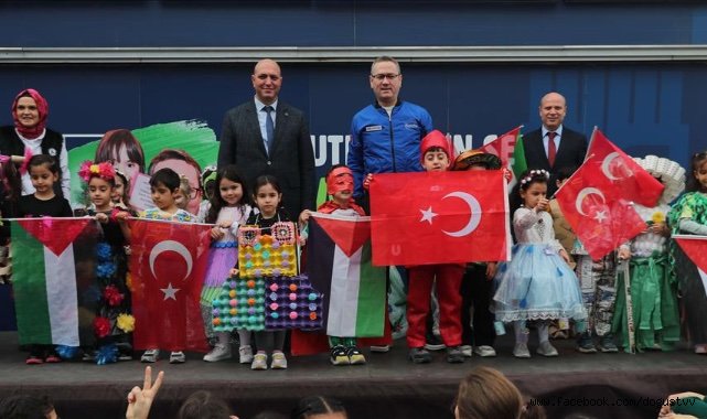 Güvercintepe İBB Mehmet Akif Ersoy İlköğretim Okulu öğrencileri, sıfır atık etkinliğinde Filistinli çocuklara destek verdi. Sahnede Filistin bayrağı açarak akranlarına selam gönderen çocukların duyarlılığı büyük alkış aldı.