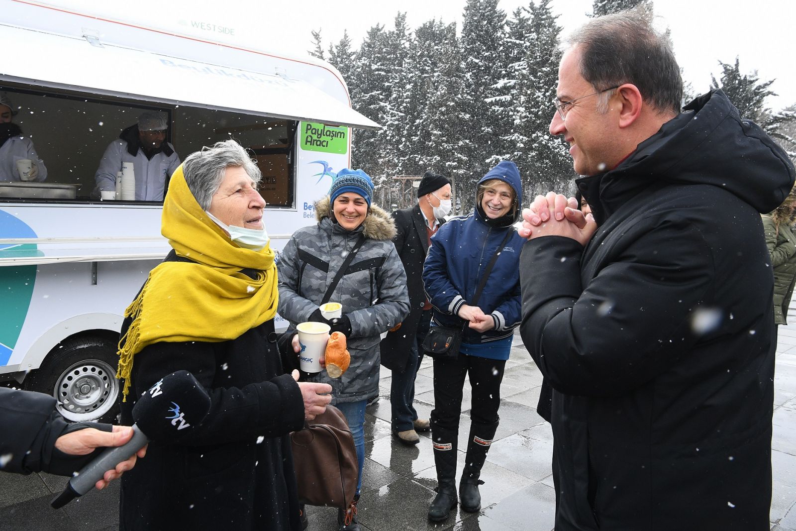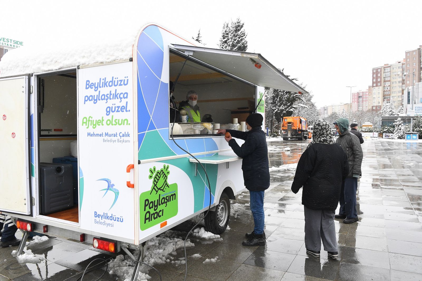 Karla mücadelemizi aralıksız sürdürürken, taksi duraklarını ve ilçe esnafının da yanında olmaya devam ediyor, komşularımızla dayanışmamızı büyütüyoruz. Tüm komşularımızın ihtiyaç duydukları her an yanlarındayız. Komşularımdan, mümkün olduğunca evlerinde kalmaları ve gerektiği noktalarda da toplu taşıma araçlarını kullanmalarını rica ediyorum. Lütfen, kış lastiksiz, zincirsiz ve tedbirsiz yollarda olmayın.” ifadelerini kullandı.