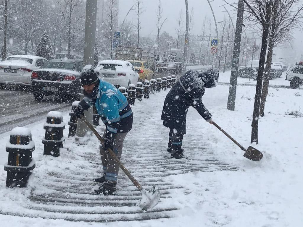 için kar küreme, tuzlama, kaldırım ve yaya yolu temizleme çalışmalarını aralıksız