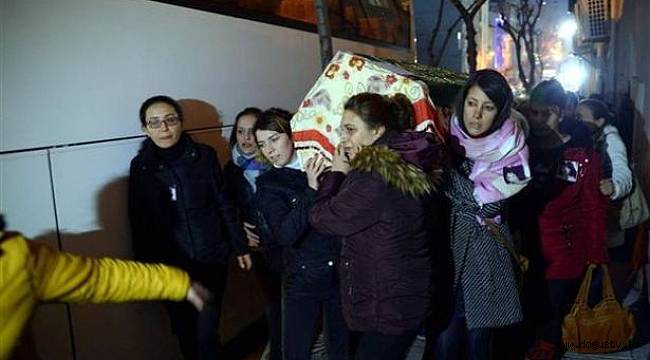 Küçükçekmece'de boşanma aşamasında olduğu eşi tarafından dün sokak ortasında kurşunlanarak öldürülen Sinem Metin Şahin’in cenazesini kadınlar taşıdı.Boşanma aşamasında olduğu eşi Mustafa Şahin tarafından silahla vurularak öldürülen Sinem Metin Şahin’in cenazesi, otopsi işlemlerinin tamamlanmasının ardından ailesi tarafından Adli Tıp Kurumu’ndan alındı.Şahin’in cenaze namazı İkitelli Cemevi’nde akşam namazının ardından kılındı. Daha sonra genç kadının cenazesi, cenazeye katılan kadınlar tarafından omuzlanarak memleketi Tokat Niksar Kuyucak Köyü’ne gönderilmek üzere otobüse konuldu. (sol)