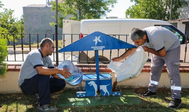 Küçükçekmece Belediyesi, hava sıcaklıklarının 35 derecelere ulaştığı sıcak yaz günlerinde doğada yaşam mücadelesi veren can dostları yalnız bırakmıyor
