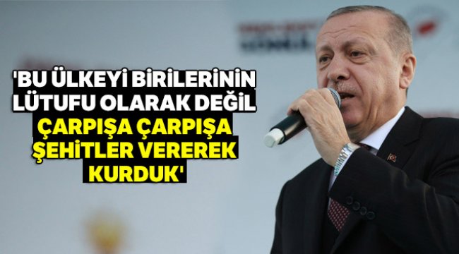 Cumhurbaşkanı Erdoğan: 'Bu ülkeyi birilerinin lütufu olarak değil çarpışa çarpışa, şehitler vererek kurduk'