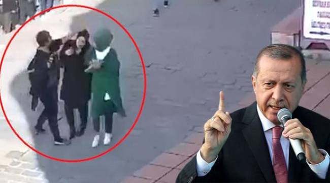 İzmir'de vatandaşlarla bir araya gelen Cumhurbaşkanı Erdoğan, Karaköy ve Beşiktaş'ta yaşanan başörtülü kadınlara saldırıyla ilgili ilk defa konuştu. Erdoğan, "Başörtülü kızlarımıza saldırıyorlar. Bunlara asla göz yummayız, yummayacağız" dedi.