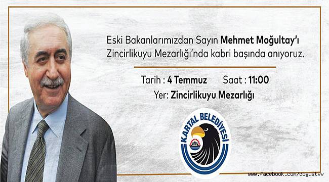 Kartal Belediyesi; avukat, siyasetçi, devlet adamı, Türkiye Büyük Millet Meclisi’nde 18. 19. ve 20. dönemlerinde İstanbul Milletvekilliği, 49. hükümet döneminde Çalışma ve Sosyal Güvenlik Bakanlığı ve 50. hükümet döneminde Adalet Bakanlığı yapmış merhum Mehmet Moğultay için vefatının beşinci yılında Zincirlikuyu Mezarlığı’nda bulunan kabri başında bir anma töreni düzenleyecek.Ülkeye önemli hizmetler sunmuş, çalışmaları ve eserleri ile gönüllerde önemli bir yer edinmiş, hafızalarda iz bırakmış değerli şahsiyetleri, genç kuşaklara aktarmak ve hafızalarda yaşatmak amacıyla anma programları düzenleyen Kartal Belediyesi, 5 Temmuz 2017’de hayatını kaybeden eski bakanlardan Mehmet Moğultay’ı, 5’inci ölüm yıl dönümünde mezarı başında anacak.Anma töreni, 4 Temmuz Pazartesi günü, saat 11.00’da Mehmet Moğultay’ın Zincirlikuyu Mezarlığı’nda bulunan kabri başında gerçekleşecek.Mehmet Moğultay1945 yılında Tunceli'de doğdu. Ankara Üniversitesi Hukuk Fakültesi'nden mezun oldu. 1969-1987 tarihleri arasında serbest avukatlık yaptı. 1987-1999 yılları arasında TBMM 18'inci, 19'uncu ve 20'nci dönemlerinde İstanbul milletvekili seçildi.Sosyal Demokrat Halkçı Parti ve CHP'de Genel Sekreter Yardımcısı, MYK üyesi ve Parti Meclisi üyesi seçildi.TBMM Plan ve Bütçe Komisyonu üyesi, TBMM Başkanvekili ve TBMM Hesaplarını İnceleme Komisyonu Başkanı olarak da görev yaptı. 1991-1995 yılları arasında 49. ve 50. DYP-SHP koalisyon hükümetlerinde ve sonrasında DYP-CHP koalisyon hükümetinde Çalışma ve Sosyal Güvenlik Bakanlığı ve Adalet Bakanlığı görevlerinde bulundu.Kartal Belediyesi’nin ‘Moğultay Belgeseli’Kartal Belediyesi, 5 Temmuz 2017 tarihinde hayata gözlerini yuman Mehmet Moğultay’ın anısını yaşatmak amacıyla geçtiğimiz yıl, yazar ve belgesel yönetmeni Nebil Özgentürk’e hazırlattığı, “Moğultay Belgeseli” ile Kartal Bülent Ecevit Kültür Merkezi’nde büyük bir gala gecesi düzenlemiş, Kartal Belediye Başkanı Gökhan Yüksel’in ev sahipliğini gerçekleştirdiği geceye, Cumhuriyet Halk Partisi (CHP) Genel Başkanı Kemal Kılıçdaroğlu başta olmak üzere Türk siyaset dünyasının önemli isimleri, Moğultay ailesi ve çok sayıda vatandaş katılmıştı.