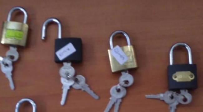 Bursa'da FETÖ davalarını izlemek için adliyeye gelen tutuklu sanıkların yakınlarının çantalarından çıkan üzerinde anahtar bulunan küçük kilitlerin salona sokulmasına izin verilmedi.