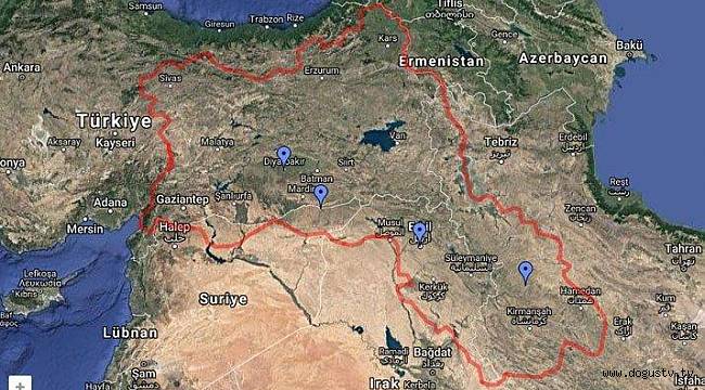 Harita incelediğinde ise Osmaniye’nin doğusundan itibaren tam 27 kentimiz sözde Kürdistan’ın içerisinde bulunduğu gözleniyor.