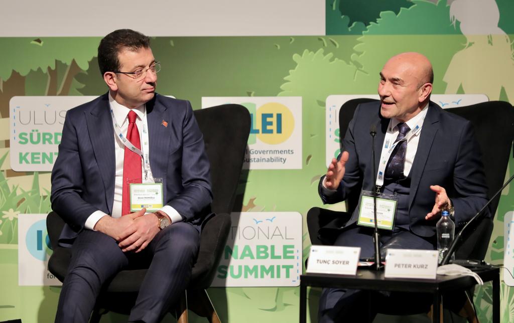 KADIKÖY / İSTANBULİstanbul Büyükşehir Belediye (İBB) Başkanı Ekrem İmamoğlu ile İzmir Büyükşehir Belediye Başkanı Tunç Soyer, Kadıköy Belediye Başkanı Şerdil Dara Odabaşı’nın ev sahipliliğinde düzenlenen “Sürdürülebilir Kentler Zirvesi”ne katıldı. CHP’nin yerel yönetimlerden sorumlu Genel Başkan Yardımcısı Seyit Torun de paneli izleyenler arasında yer aldı. Kozyatağı Kültür Merkezi’nde düzenlenen “Başkanlar Paneli”nde konuşan İmamoğlu, “Pandemi sonrası fiziki buluşmaların yoğunlaşmasının, bugüne dair en önemli dokunulması gereken kısmı, barışa katkısı” dedi. Kentleri yönetenlerin, bir araya gelip konuştukça, savaşı engelleyici bir güce de sahip olacağına inandığını vurgulayan İmamoğlu, Rusya ve Ukrayna arasındaki savaşa şu sözlerle gönderme yaptı: