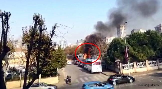 Kadıköy'de bir inşaatta başlayan yangın park halindeki lüks cipe sıçradı. Alevlere teslim olan cip bir anda bomba gibi patladı. Patlamanın etkisiyle alevler metrelerce yükselirken vatandaşlar büyük panik yaşadı. Alev alev yanan cipin patladığı anlar cep telefonu kamerasına saniye saniye yansıdı.