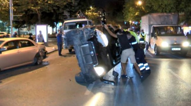 Kadıköy'de park halindeki otomobile çarpan otomobil takla attı