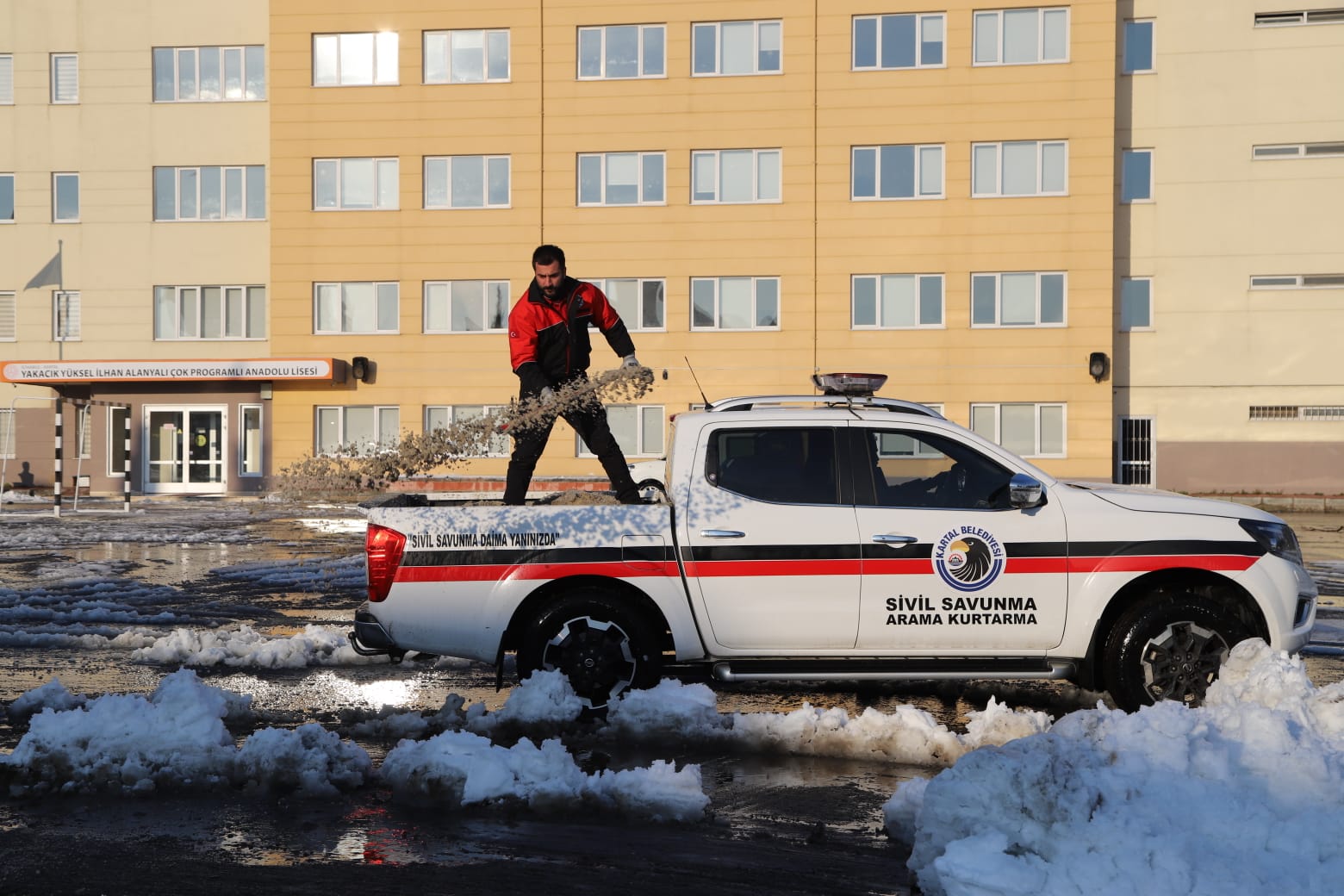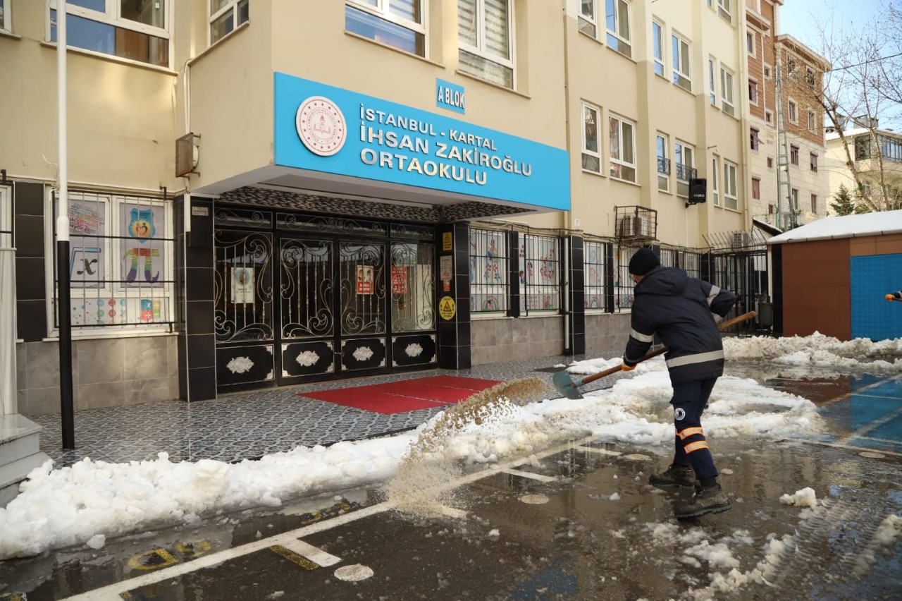 Kartal Belediyesi İstanbul genelinde dört gündür etkisini sürdüren yoğun kar yağışı mesaisine okul bahçelerinde de devam etti. Kar yağışı nedeniyle eğitime verilen aranın ardından, okullarda öğrencilerin ve velilerin sorun yaşamaması adına kar küreme çalışmaları ile buzlanma olasılığına karşın tuzlama yapıldı. İlçe genelinde faaliyet gösteren devlet okullarının bahçeleri belediye personelleri tarafından kardan arındırıldı.Kartal Belediyesi Fen İşleri Müdürlüğü, Temizlik İşleri Müdürlüğü ve Sivil Savunma Uzmanlığı ekiplerinin ortaklaşa yürüttüğü çalışmalar kapsamında kar küreme çalışmalarının yanı sıra tuzlama çalışmaları da yapıldı. Okul bahçeleri önce kar küreme araçlarıyla temizlenirken ardından zemin tuzlanarak buzlanmaya karşı tedbir alındı. Kar temizleme çalışmasıyla beraber dört günlük aranın ardından okullarına tekrar başlayacak olan öğrencilerin güvenlikleri önemli ölçüde sağlandı.