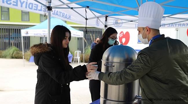 Kartal Belediyesi'nden üniversite öğrencilerine sıcak çorba ve çay ikramı