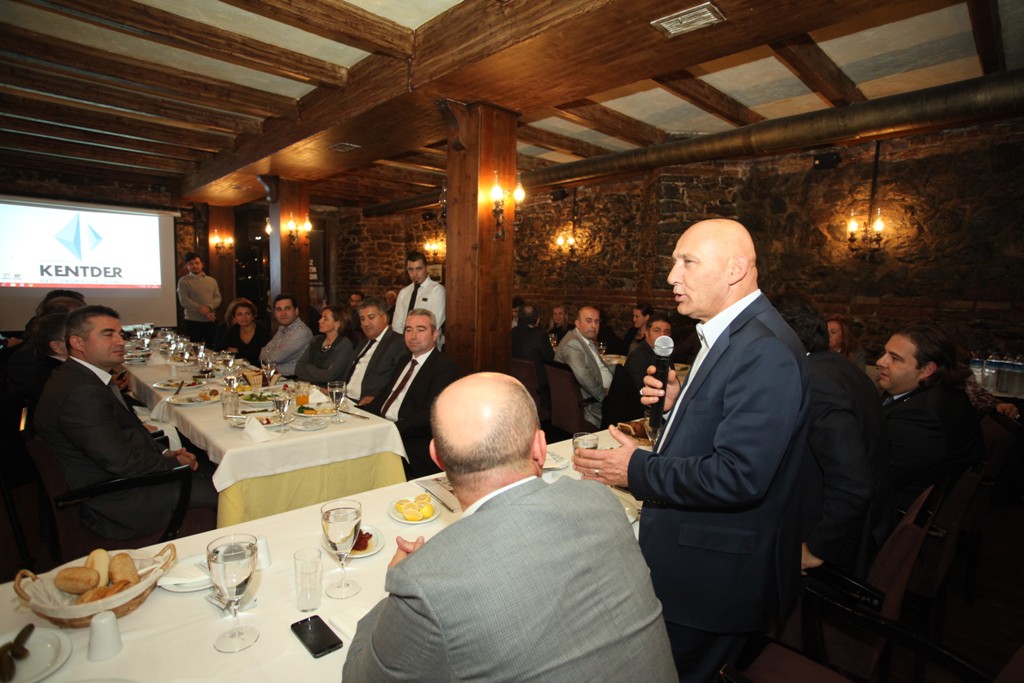 Erkanlı Grup Yönetim Kurulu Başkanı Rıza Hüseyin Erkanlı ve Gürallar Yapı Yönetim Kurulu Başkanı Erol Güral , Gürallar Yapı Genel Müdürü Evrim Karayel, Kartal Belediyesi Deprem Dönüşüm ve Yapı Kontrol Müdürü Nuran Keriş, yapı inşaat şirketleri müdürleri, şehir plancıları, avukatlar ve yapı tedarik firmalarının genel müdürlerinin yer aldığı toplantıda Tasarım Araştırma Katılım ‘TAK KARTAL’ ekibinden Özgün Günsürer, TAK KARTAL’ın çalışmalarını sunum eşliğinde anlattı. Günsürer, ‘TAK KARTAL’ın nasıl çalıştığı, bir şehrin ve kentin sağlıklı olabilmesi için nasıl bir vizyona ihtiyaç duyulduğu, yaşam ve kalitenin arttırılması için dönüşümün nasıl yapılaması gerektiği, bilgi ve araştırmaya dayalı sorunları çözmenin yolları konularına değindi. Fikirleri olan mahallelileri, yaratıcılığı olan tasarımcıları, becerileri olan gönüllüleri, geleceğim var diyen öğrencileri ve olanakları olan destekçileri bir araya getirerek çözüm üreteceklerinin altını çizen Günsürer, ‘TAK Kondu’ ve ‘TAK Gezici Otobüsleri’ hakkında da bilgi verdi.