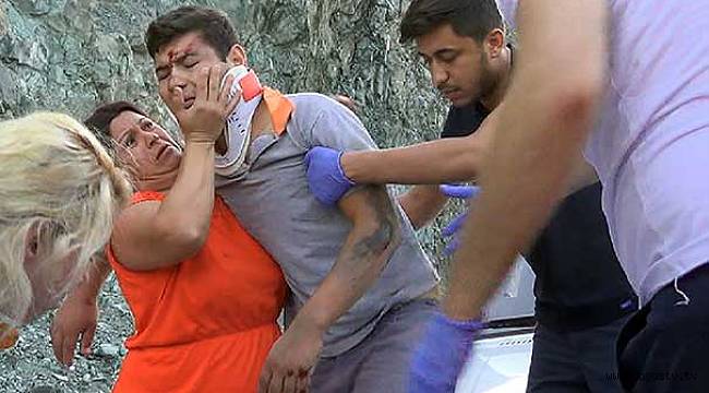 Antalya’nın Kemer ilçesinde minibüsün çarptığı motosikletli ağır yaralanırken kazayı duyup olay yerine gelen anne yaralı oğluna destek olmaya çalıştı.