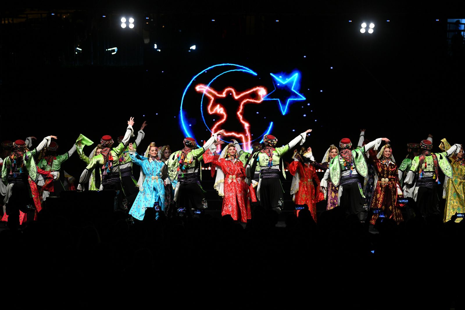 sahnede yerini alırken kapanışta, Mustafa Kemal Atatürk’ün 10.yıl Nutkunun