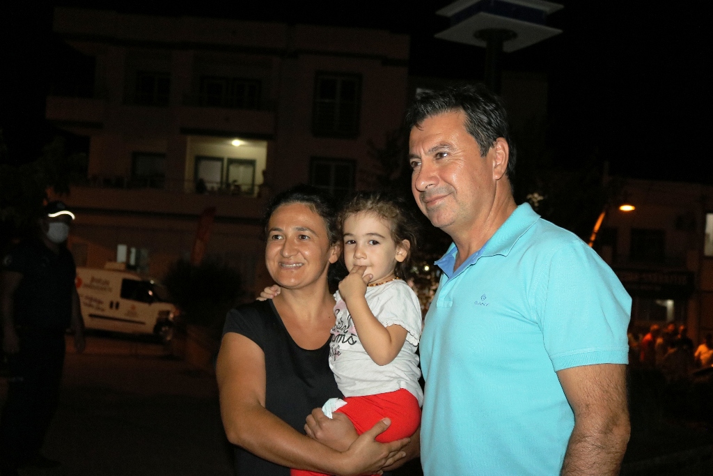 Mumcular ve Mazı Mahallesi’ndeki ‘’Köy Meydanı Türk Filmleri Günleri’’ni yangından etkilen vatandaşlara moral amaçlı olarak düzenlediklerini ifade eden Bodrum Belediye Başkan Aras, Başkan Yardımcısı Hüseyin Tutkun ve birim müdürleri ile bölgede vatandaşlarla birlikte film izledi.