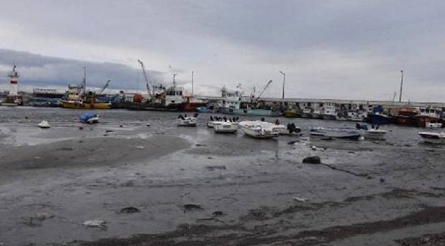 Deniz çekilmesi nedeniyle limanda bağlı kayık ve teknelerin de kara oturduğu görüldü.