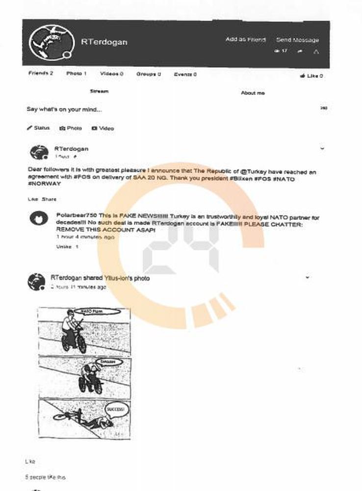 Türkiye kökenli bir Norveç vatandaşı NATO tatbikatının yapıldığı sırada sosyal medya hesaplarını taklit eden bir simülasyonda “RTERDOĞAN” kullanıcı adıyla sahte hesap açtı.