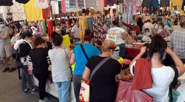 Vatandaşların fiyatların düşük olması nedeniyle daha çok tercih ettiği semt pazarları, pandemi döneminde olunmasına rağmen boş kalmıyor. Günlük giyim ve yiyecek ihtiyaçlarını karşılamak için pazarların yolunu tutan tüketiciler, kısmen önlem alarak pazardan alışveriş yapmaya devam etti.İzmir genelindeki semt pazarlarında satış yapanların pazar yerine girişlerinde HES kodu sorgulanırken, görevli zabıta personeli de vatandaşlara dezenfektan veriyor. Pazara gelen bazı vatandaşlar rahat davranışlar sergilerken bazıları ise alışverişini hızlı biçimde tamamlayıp, ayrılıyor.‘PAZARA GİTMEDEN DE OLMUYORPazara uzun süredir gitmediğini belirten Nuray Yıkıcı “Pandemi nedeniyle gelmiyordum. Yazlıkta kalıyordum. Uzun süredir ilk kez geldim. İnsanlar mümkün olduğunca kurallara uymaya çalışıyor. Ama bence yeterli değil” dedi.Türkan Karahaner de “Pazar bence çok kalabalık. Neredeyse herkes birbirine temas ediyor. Sosyal mesafeyi korumaya çalışıyoruz ama mümkün olmuyor. Ancak pazara gelmeden de olmuyor. Pazarda fiyatlar dışarıya göre daha uygun oluyor. Kurallara uyan da var, uymayan da var. Pazara gittiğimde, korkuyorum. Mümkün olduğunca sosyal mesafeme dikkat etmeye çalışıyorum. Çok yaklaşan olursa uyarıyorum ama kimse dinlemiyor” diye konuştu.