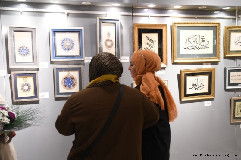 Sergilerin ilk etabında hat, tezhip, minyatür, çini, kat-ı, ebru vesedef kakma eserleri sanatseverlerle buluşturuluyor.