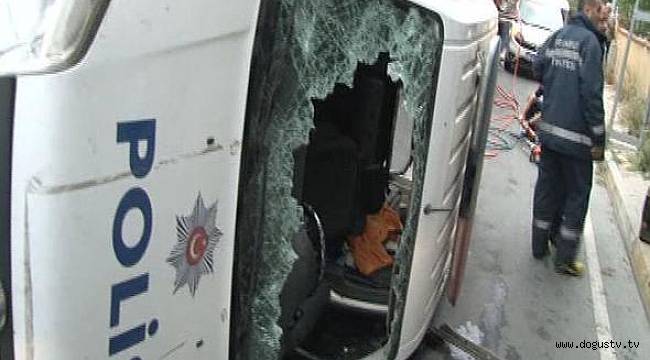 Ataşehir'de devriye görevi yapan polis aracı, park halindeki araca çarptıktan sonra devrildi. Kazada bir polis memuru sıkıştığı yerden itfaiye tarafından kurtarıldı.