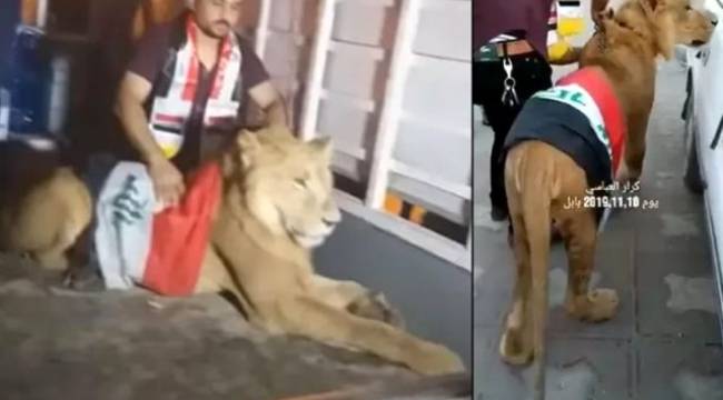 Irak'ta ülke genelinde önü alınamayan protesto gösterileri esnasında ilginç bir görüntü kameralara takıldı. Merkezi hükümete bağlı güvenlik güçleri göstericileri dağıtmak için köpeklerini kullanmaya başlayınca, göstericiler de meydana aslanla geldi.