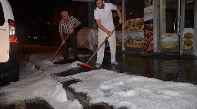 Kış turizminin sayılı yerleri arasında bulunan Sarıkamış'ta etkili olan dolunun ardından ilçe yaz mevsiminde beyaza büründü
