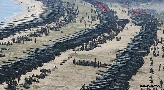 Geçtiğimiz günlerde ABD'ye gözdağı vermek için askeri bir geçit hazırlayarak elindeki çeşitli ebatlardaki savaş araçları ve füzeleri sergileyen Kuzey Kore, bu kez de yüzlerce topçuyu sahil sınırına yığarak ABD donanmasına adeta gözdağı verdi.