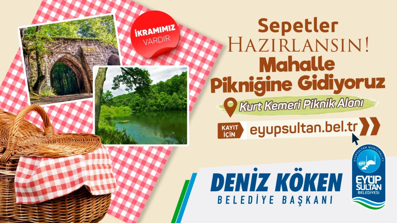 “Sepetler Hazırlansın, Mahalle Pikniğine Gidiyoruz” sloganıyla Kurt Kemeri Piknik Alanı’nda gerçekleştirilecek olan mahalle pikniklerine katılım için kayıt yaptırmak zorunlu.Pikniğe katılmak isteyenler Eyüpsultan Belediyesi’nin web sayfası olan www.eyupsultan.bel.tr adresinden kayıt yaptırabilecek.VATANDAŞLAR SADECE İKAMET ETTİĞİ MAHALLEYE KAYIT YAPTIRABİLECEKVatandaşlar sadece ikamet ettiği mahalleye kayıt yaptırabilecek. Bu arada 4 yaşından büyük çocuklar için de kayıt zorunludur.Kaydını yaptıran vatandaşlar piknik alanına, belediye tarafından tahsis edilen otobüslerle götürülecek.Otobüsler programda belirtilen tarihlerde, yine programda belirtilen adreslerden saat 10:00'da hareket edecek.Pikniğe gidecek olan vatandaşların en geç 09:30'da listede yer alan kalkış noktasında olması gerekmektedir.Geri dönüşte ise otobüsler saat 15:00'te Kurt Kemeri Piknik Alanından hareket edecek ve saat 16:00'da otobüse binilen noktaya gelecek.PİKNİK ALANINDA İKRAMLAR YAPILACAKPikniklerde Eyüpsultan Belediyesi tarafından vatandaşlara nohutlu pilav ve ayran ikramları olacak.Dileyen vatandaşlar yanlarında piknik sepeti getirebilecek.Program:20 Haziran Salı- Esentepe Mahallesi - Sağlık Ocağı Önü21 Haziran Çarşamba- Yeşilpınar Mahallesi - Pınar Camii Önü22 Haziran Perşembe - Güzeltepe Mahallesi ve 5.Levent Mahallesi - Sağlık Ocağı Önü