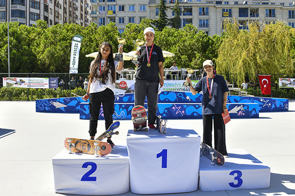 esenyurt Belediyesi ev sahipliğinde düzenlenen, Kaykay Sokak Disiplini Türkiye Şampiyonası’nın 3.etabı tamamlandı. Avrupa Yakası’nın en büyük kaykay parkı olma özelliğine sahip Esenyurt Kaykay Parkı’nda gerçekleşen yarışlarda, erkekler ve kadınlar kategorisinde ilk üçe giren sporcular ödüllerini ve hediyelerini Esenyurt Belediye Başkanı Kemal Deniz Bozkurt’un elinden aldı. Kaykay Sokak Disiplini Türkiye Şampiyonası’nın 3. Etabı, oynanan final yarışları ile tamamlandı. Avrupa Yakası’nın en büyük kaykay parkı olma özelliğine sahip olan Esenyurt Kaykay Parkı’nda gerçekleşen şampiyonaya Esenyurt Belediye Başkanı Kemal Deniz Bozkurt, Türkiye Kaykay Federasyonu Genel Sekreteri Muhsin Mete, belediye başkan yardımcıları ve çok sayıda vatandaş katıldı. Türkiye’nin 9 farklı şehrinden 20’si kadın 50’si erkek olmak üzere toplam 70 lisanslı sporcunun katıldığı şampiyonada gerçekleşen ön elemeler ve yarı final turlarının ardından yapılan filan yarışlarında kadınlar kategorisinde