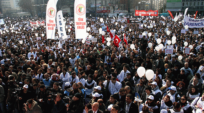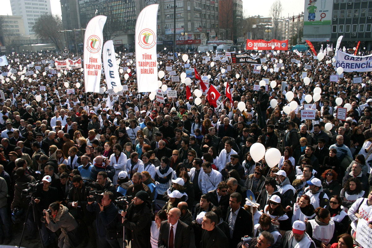 Türk Tabipler Birliği Başkanı Prof. Dr. Şebnem Korur Fincancı, sağlık ortamının tahribatına, çalışma koşullarına karşı sorunlarını ve insanca yaşanılabilecek bir ücretin verilmesi için taleplerini dile getirdiklerini söyledi.