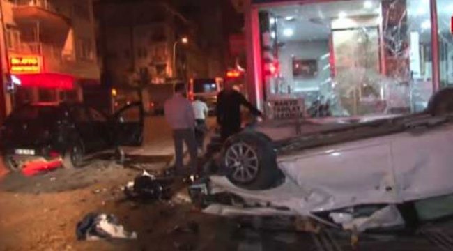 Kaza saat 05.30 sıralarında Mithatpaşa Caddesi 'nde meydana geldi. Hızlı olduğu iddia edilen otomobilin sürücüsü direksiyon hakimiyetini kaybetti. Kontrolden çıkan araç taklalar atmaya başladı. Araç önce yolda yürüyen bir kişiye çarptı. Duvar ile araç arasında sıkışan kişi ağır yaralandı. Otomobil daha sonra başka bir araca çarparak durabildi. Çarptığı aracın sürücüsünü de yaralayan sürücü, araç içinde sıkıştı. Olayı gören vatandaşların ihbarı üzerine olay yerine itfaiye ve sağlık ekipleri sevkedildi. Kısa sürede olay yerine gelen itfaiyeye ekipleri sıkışan sürücü araçtan çıkardı. Yaralılara 112 ekipleri olay yerinde müdahale ettikten sonra çevre hastanelere kaldırıldı. Kaza nedeniyle işyeri zarar gören İsmail Aksu, “Alkollüymüş herhalde içki şişeleri vardı“ diye konuştu.Kazada sonrası takla atan araçtan yola saçılan alkol şişeleri dikkat çekti.