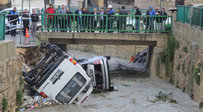 Yol çöktü araçlar dereye yuvarlandı